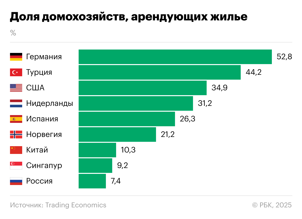 Причины такого распределения чаще всего культурно-исторические или связаны с правилами и регулированием. В той же Германии во второй половине XX века много жилой недвижимости строилось в интересах компаний для дальнейшей сдачи в долгосрочную аренду.