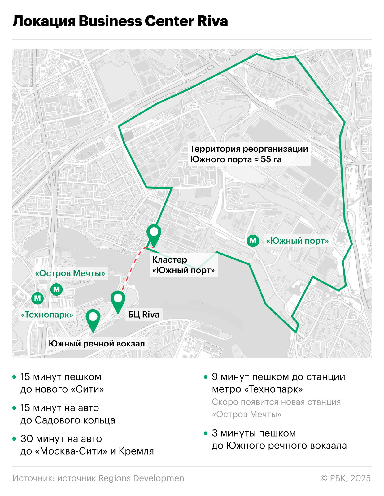 В таких условиях интересной альтернативой для бизнеса становятся отдельно стоящие бизнес-центры в непосредственной близости от будущего делового кластера. В частности, Business Center Riva — офисный центр класса А у самого берега Москвы-реки. Проект находится на завершающей стадии готовности и будет введен в эксплуатацию в первом квартале 2026 года — задолго до того, как начнется ввод офисных зданий «Южного порта».