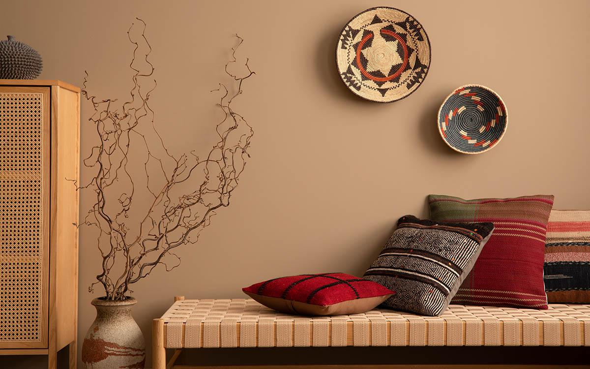 - Использовать подушки и покрывала с этническими узорами
