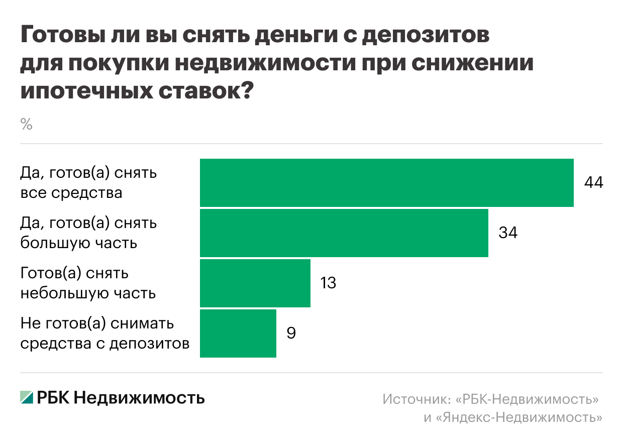 При снижении ипотечных ставок 81% участников опроса готовы снять средства с депозитов. Из них:
