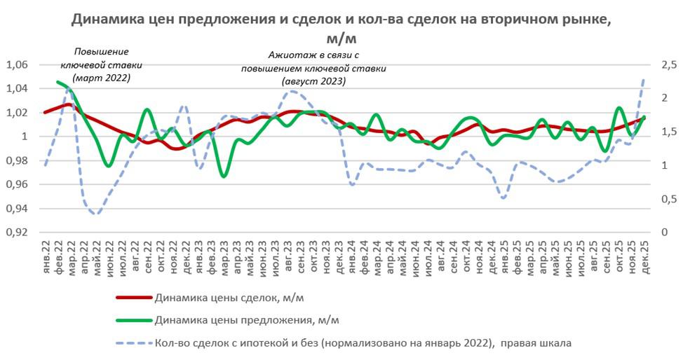 Эксперты связывают рост с ожиданиями ограничений, которые с 1 февраля вносятся в программу семейной ипотеки: это подстегнуло спрос на первичном рынке и одновременно сказалось на ценах на готовое жилье, поскольку сделки с новостройками часто зависят и от продаж имеющейся недвижимости.