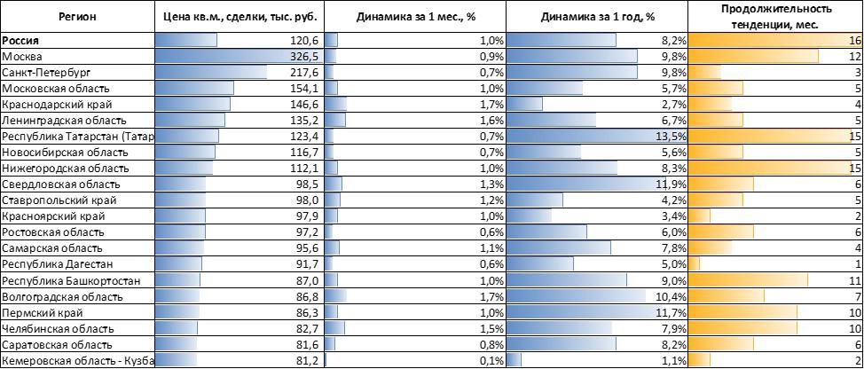 «В результате продолжающегося роста цен по итогам декабря на первичном рынке фиксируется незначительное число регионов, в которых на протяжении последних трех и более месяцев подряд падают цены на жилье, — говорится в исследовании. — На вторичном рынке снижения цен не произошло ни в одном регионе».