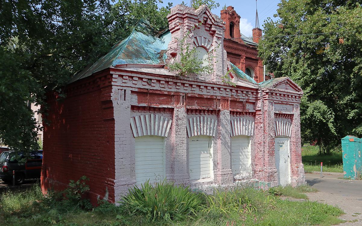 Небольшая (32,5 кв. м) сторожка из красного кирпича, включенная в 2019 году в реестр объектов культурного наследия регионального значения, — это часть архитектурного ансамбля фабрики суконной мануфактуры «Йокиш». В 70-е годы XIX века неподалеку от парковой зоны у Большого и Малого Головинских прудов ее возвели по проекту архитектора Дмитрия Сухова, которого называли «московским чудаком». Он же — автор большинства других построек на территории фабрики, а в последующем — известный реставратор памятников Московского Кремля.
