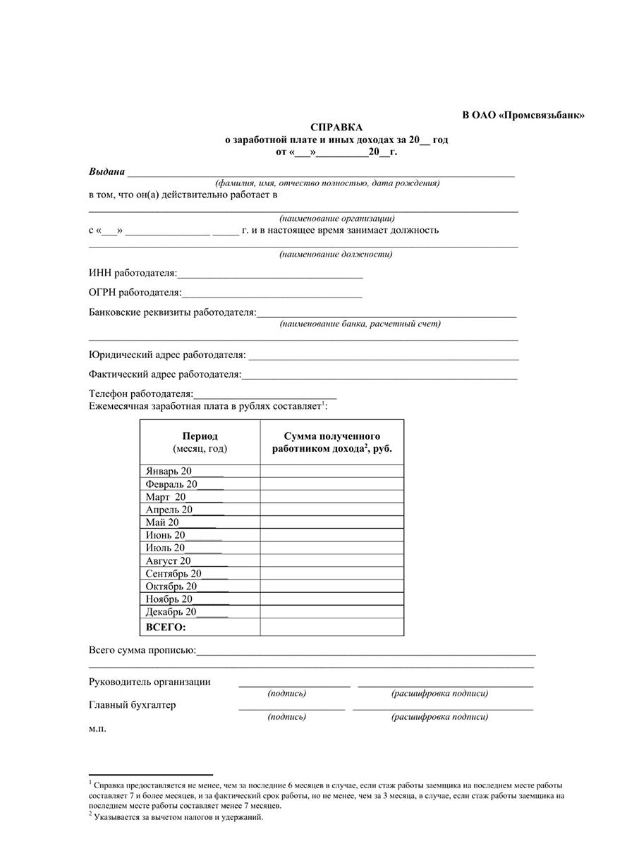 Справка по форме банка — это компромисс на случай, когда заемщик не может подтвердить свои доходы другими способами.