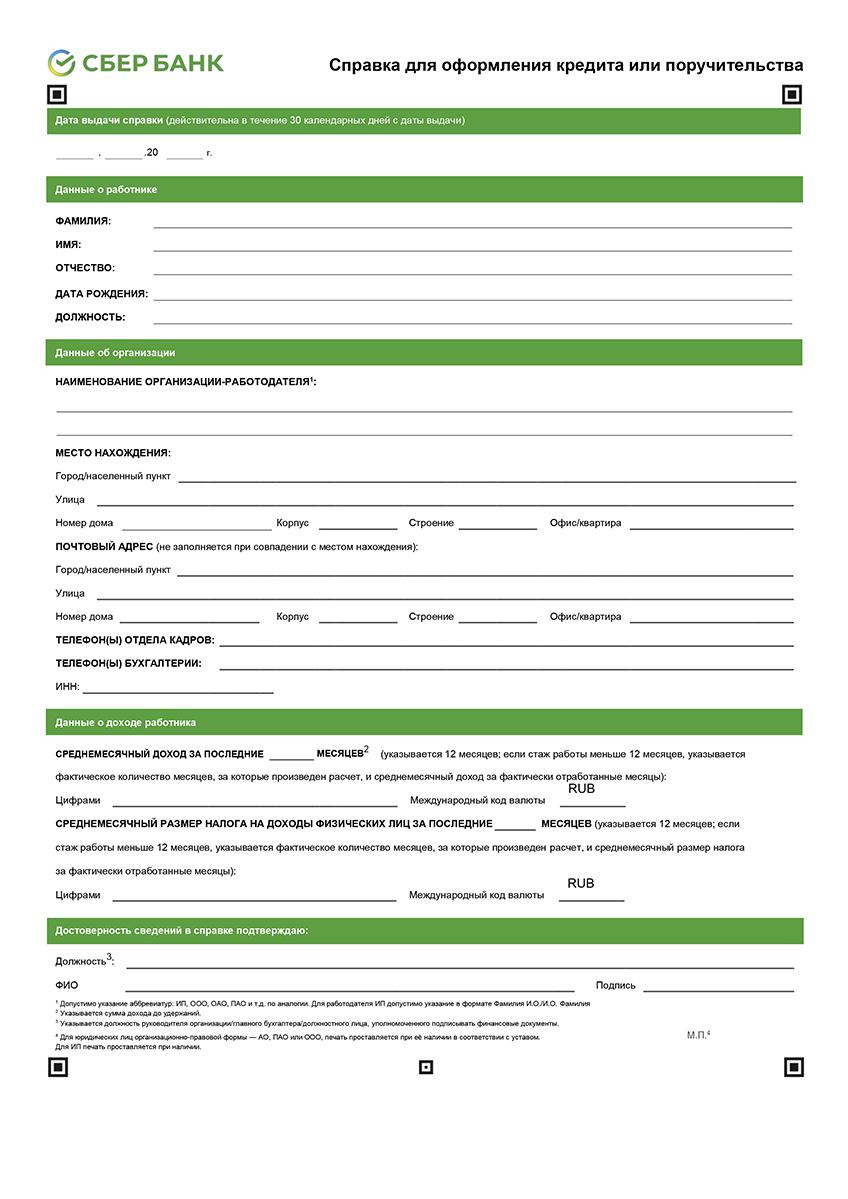• Бланк справки по форме нужно получить в кредитной организации, в которой планируется оформление кредита, ипотеки. Использовать один и тот же документ для предоставления в разные организации нельзя. Для каждой заполняют свой по утвержденной форме.